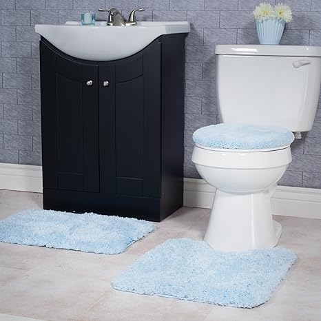 Amazon Com 3 Piece Light Blue Luxurious Bath Rug Set Of 3