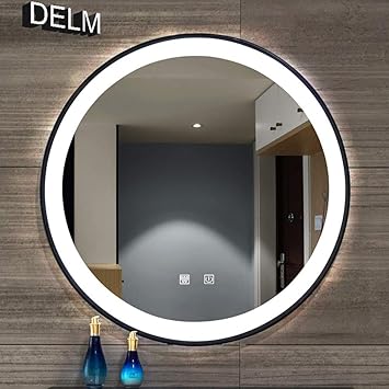 Amazon Com Delm Black Finish Round Mirror Beautify Led