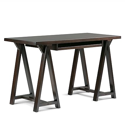 Simpli Home 3axcsaw 07s Br Sawhorse Solid Wood Modern Industrial 50 Inch Wide Small Writing Office Desk In Dark Chestnut Brown