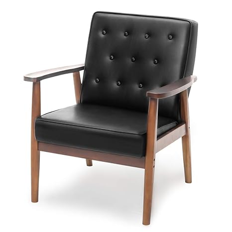 Superday Mid Century Modern Accent Chair Upholstered Wooden Lounge Arm Chair Fabric Single Sofa For Living Room Black